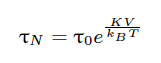 Esta frecuencia de «vibración» está gobernada por la ecuación de relajación de Néel, una fórmula ganadora de un Premio Nobel que calcula el tiempo que tarda en ocurrir esta inversión magnética (τn​).