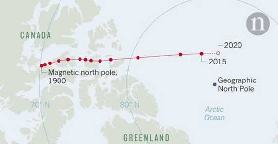 Es decir, el polo norte magnético que está ubicado en el punto más septentrional del mundo, en territorio de Canadá. Ahora, se está alejando en dirección a Siberia por causas desconocidas.